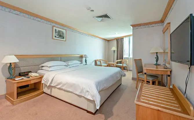 New Century Hotel’s restaurant serves a variety of Cantonese-Chinese and Western delights. Room service is possible.